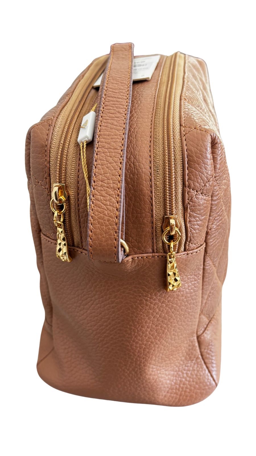 Bolsa Bianchi em couro texturizado, com três compartimentos com zíper e alça regulável longa. É um modelo clean, super prático e elegante, ideal para quem gosta de sofisticação minimalista no dia a dia.